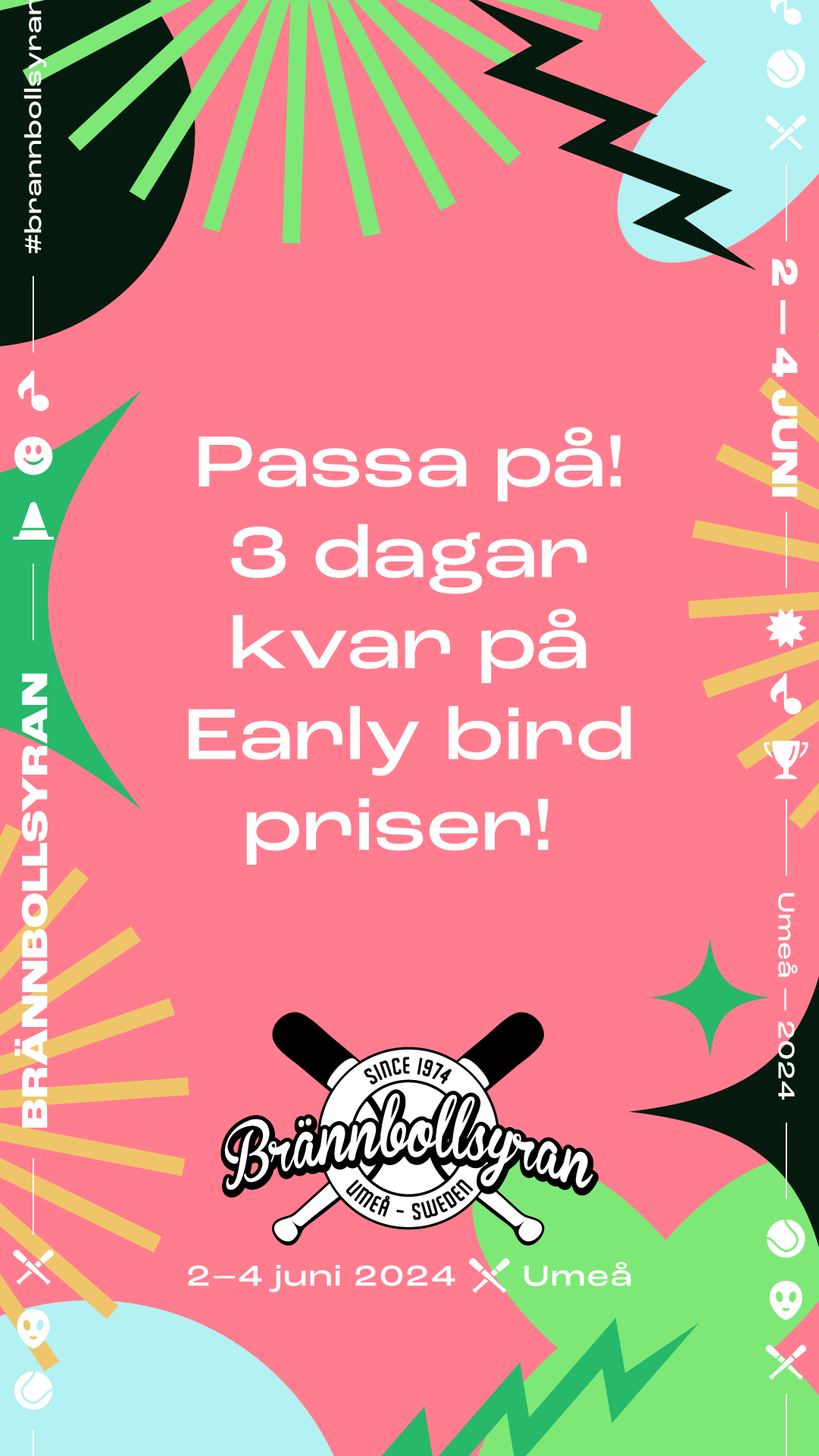When I was working at Soja we got the chance to rebrand the popular festival ‘Brännbollsyran’ a couple of times throughout the past 5 years. For 2023 (and upcoming years) this will be the new look and I’m really excited about the result.